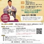 2025/10/14 / 最終更新日時 : 2025/10/14 北杜市商工会 相談会・講習会 北杜市商工会合併20周年記念講演会 落語家 立川晴の輔氏『コンプライアンスの真逆⁉ 落語立川流の世界』 【日時】 令和7年11月11日(火)受付開場14:30 / 開演15:00 【場所】 八ヶ岳やまびこホール 【申込・入場チケット配布期間】 令和7年10月15日(水)午前9時~10月31日(金)午後4時 ※上記期間中であ […]